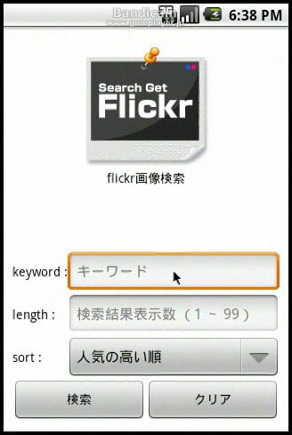 初めて作成したアンドロイドアプリです。写真ストレージサービス「flickr」上からキーワードに合った画像を探してきてSDカードへ保存できるというアプリです。