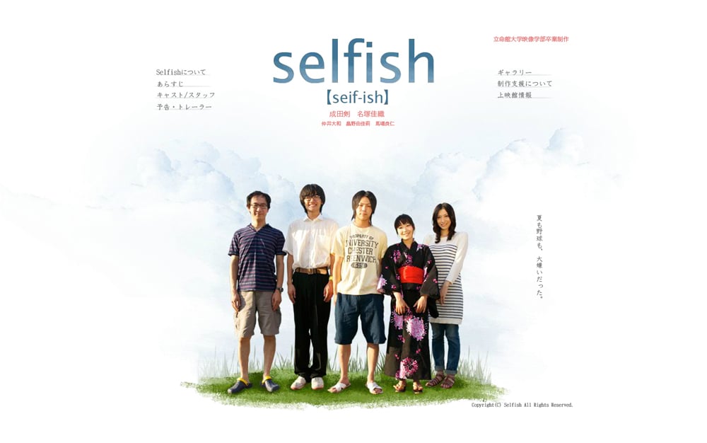 立命館大学映像学部 Selfish制作委員会様からのご依頼で作成した映画のプロモーションサイトです。