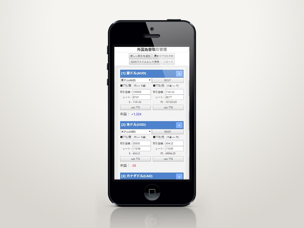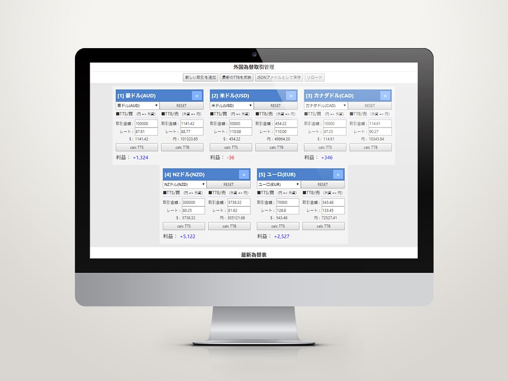 5種類の外国為替取引状況を確認・保存が可能なWeb Appです。