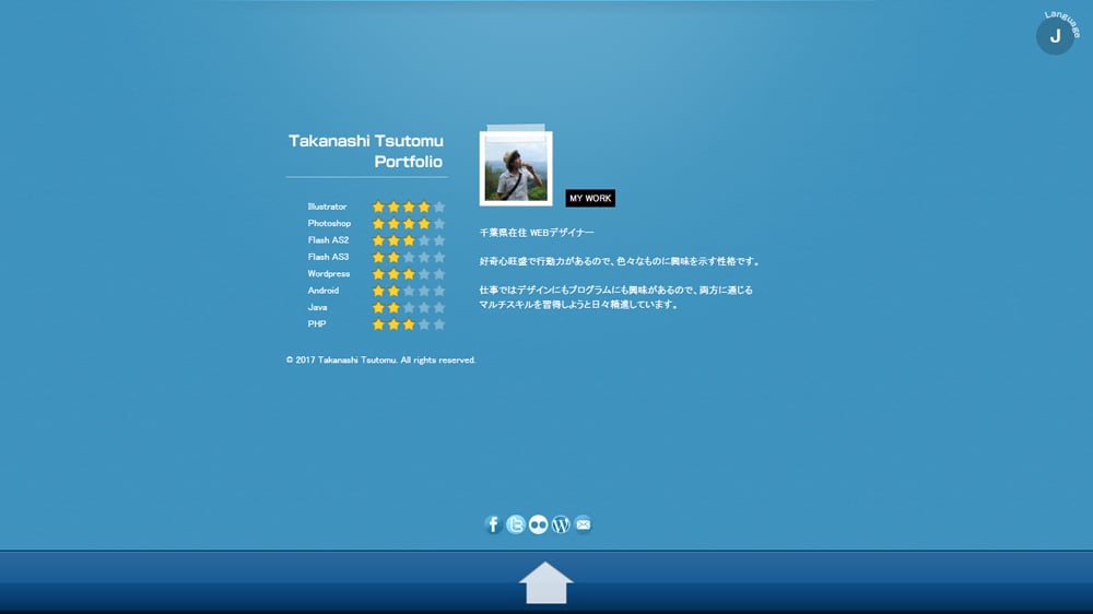 過去のポートフォリオサイトです。スマホ未対応。一部Flash使用。青を基調にシングルページで仕上げました。